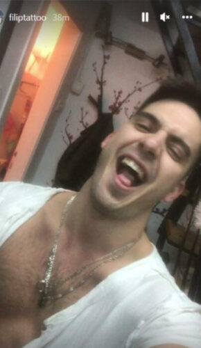 Lepim vestima pohvalio se ponosni tata Filip na Instagarmu kada je na storiju okačio svoju fotografiju na kojoj se vidi njegova pocepana majica, te je očigledno da je slavlje povodom dolaska naslednika počelo.