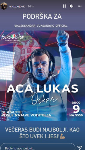 Pevač Aco Pejović podržao je Acu Lukasa u finalu izbora pesme za EVROVIZIJU.
