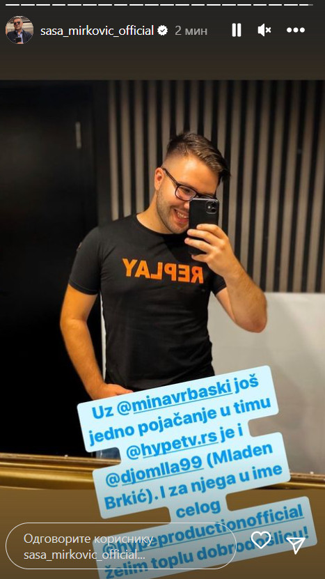 Takođe, naš tim dobija pojačanje sa menadžerom elektronskih medija Mladenom Brkićem te je i njemu producent, direktor i vlasnik Hype produkcije poželeo dobrodošlicu putem svog Instagram profila.