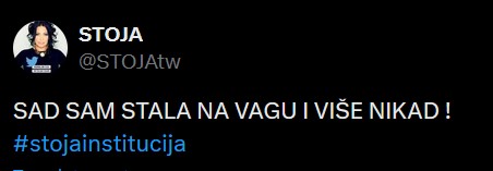 „Sad sam stala na vagu i nikad više“, napisala je Stoja na društvenoj mreži Iks.
