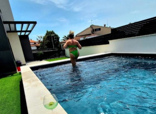 Pevačica Stoja Novaković pokazala je kako uživa pored bazena, te se skinula u šestoj deceniji i pozirala u zelenom kupaćem kostimu.