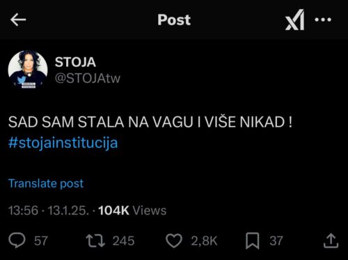 „Što više stida i srama u Novoj 2025. godini, od srca nam svima želim“, napisala je Stoja. skoro je pričala i na temu dijeta.