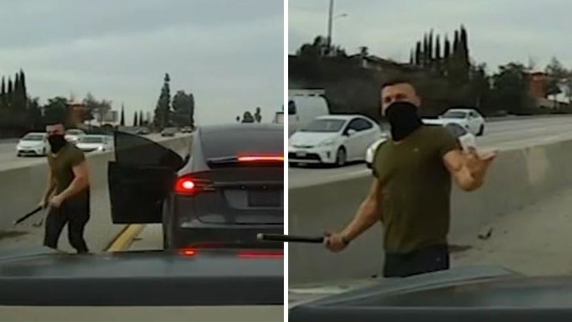 STRAŠNO! Maskirani manijak u Tesli jurio vozače na autoputu i ​​palicom razbijao automobile (VIDEO)