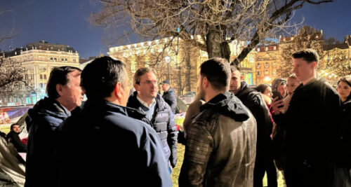 Ministar kulture Nikola Selaković došao je u Pionirski park da pruži podršku okupljenim studentima.