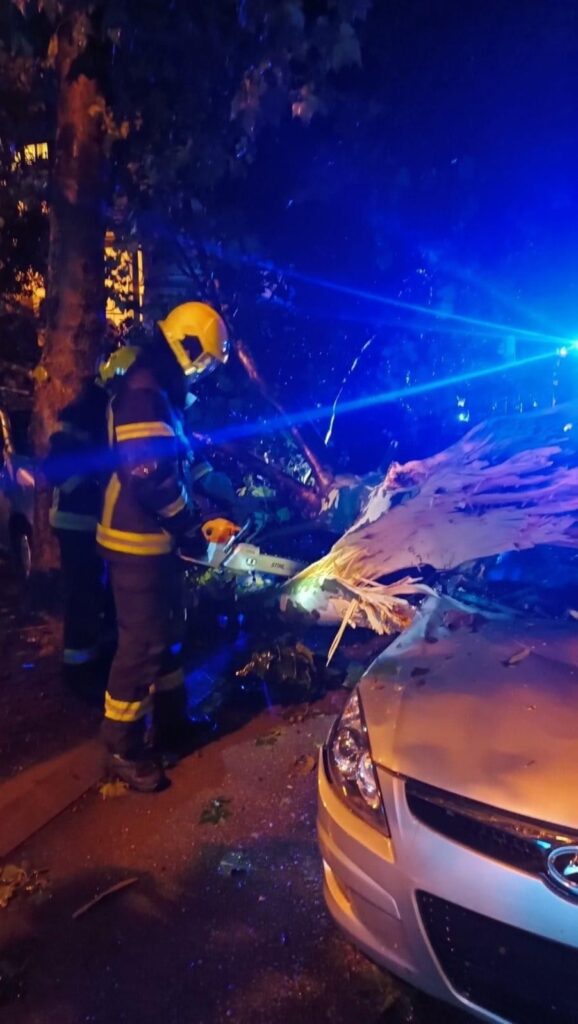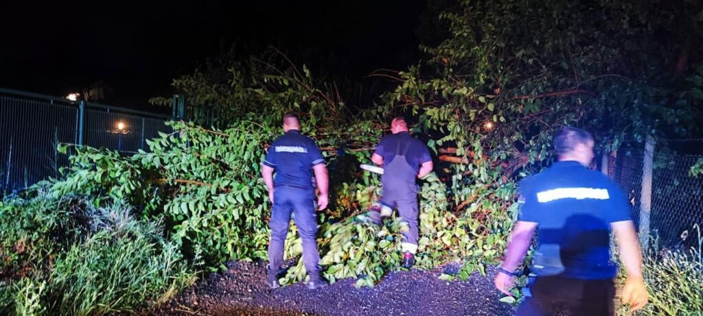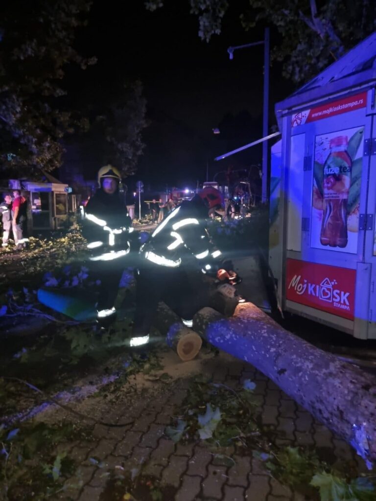 Svi pripadnici Sektora za vanredne situacije, vatrogasci spasioci i predstavnici javnih komunalnih službi su na terenu. Jak vetar obarao je sinoć drveće, nosio krovove, rušio kranove.