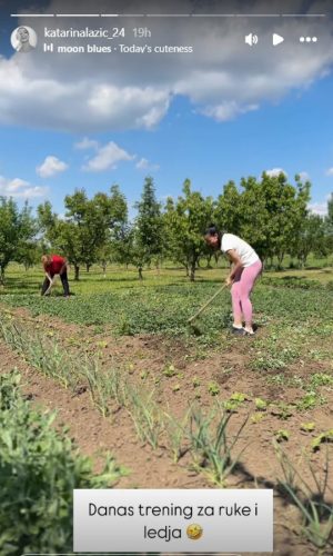 Supruga pevača Darka Lazića, Katarina Lazić, ponovo je oduševila svoje pratioce sadržajem koji deli na Instagramu. Ovog puta, Katarina je pokazala kako neumorno radi na njivi, rame uz rame sa svojom majkom – i to bez šminke sa motikom u ruci.