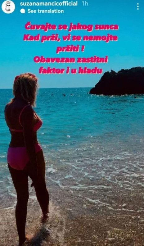 Suzana je pozirala u roze bikiniju dok se sunčala na steni, nakon čega je išla u vodu da se rashladi.