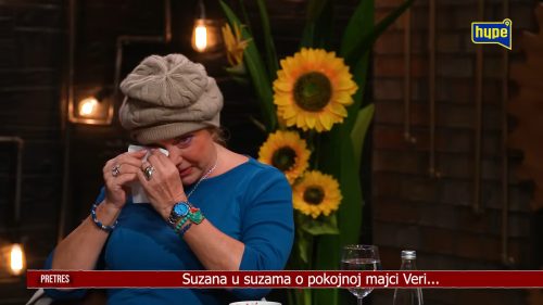 „Jurila sam neki lek, mama je bila operisana. Bubrezi su joj otkazivali, a ja sam se raspitivala po celom regionu za lek, koji je stigao. Ja dolazim – i oni mene ne puštaju na odeljenje intenzivne nege. Rekli su mi da sačekam. Na kraju su me pustili i tu je radila drugarica moje rođake. Rekla mi je da mi je mama preminula. Kada sam ušla, mislim da je ona čekala da me vidi“, započela je Suzana kroz suze i pitala je voditelja da li uvek rasplače goste.