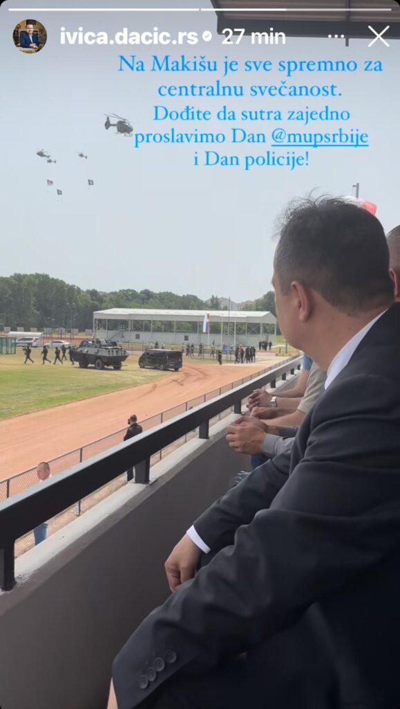 -Na Makišu je sve spremno za centralnu svečanost. Dođite da sutra zajedno proslavimo Dan MUP-a Srbije i. Dan policije – napisao je Dačić na svom Instagram storiju, pozivajući građane da se pridruže obeležavanju ovog značajnog dana.