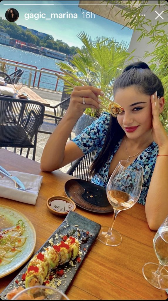 Gagićeva je uživala u ručku, a prsten kojim se ranije pohvalila na instagramu, i dalje je na njenoj ruci.