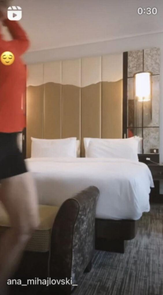 Siva, crna, oker, bež boje su koje se prepliću u novoj spavaćoj sobi Ane Mihajlovski, koja je pretpostavlja se vrlo slična onoj koju nastoji da dobije renoviranjem. Pored pozamašnog bračnog kreveta smešteni su interesantni metalni noćni stočići za visokim lampama.