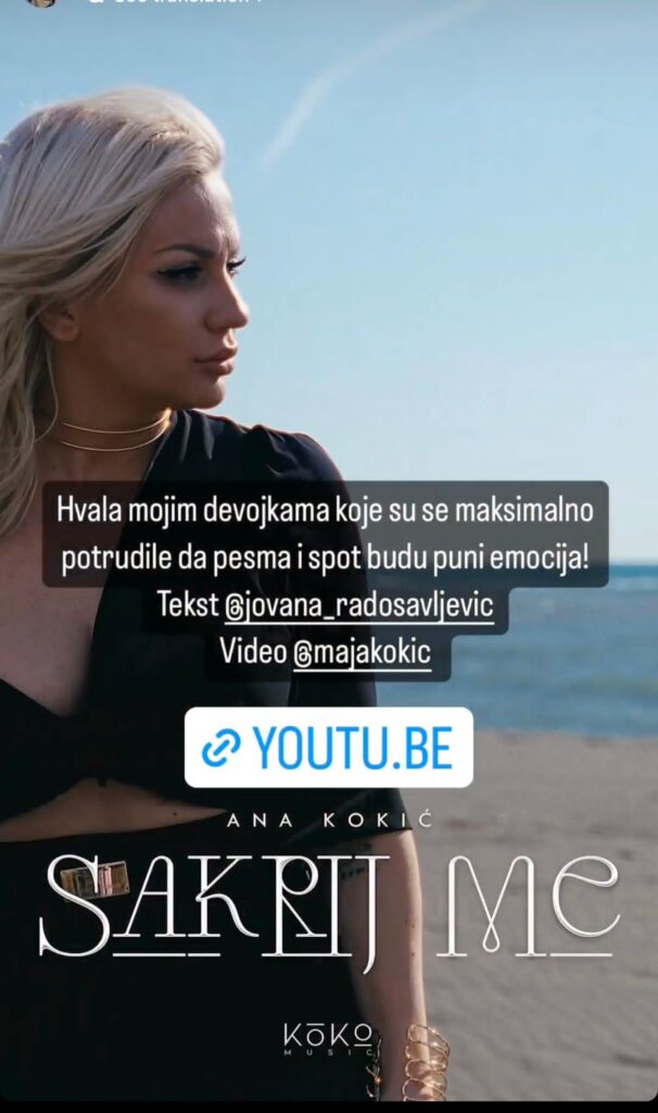 Kokićeva je na svom Instagram nalogu odlučila da se zahvali prijateljici Jovani na sjajnom tekstu, ali i sestri Maji koja se prvi put našla iza kamere kada je jedan ovako veliki projekat u pitanju.