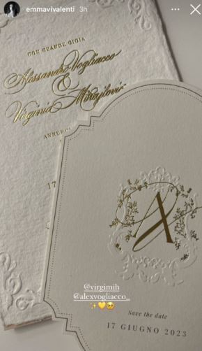 Virdžinija je otkrila ko će biti kumovi. Njeni svedoci biće brat Miroslav i sestra Viktorija, a Alesandro je takođe izabrao sestru i brata. Burme su izrađene od žutog zlata sa brilijantima. Videli smo i kako izgleda pozivnica.