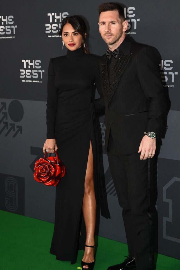 Mesi joj je parirao u crnom elegantnom odelu. Kada je reč o njegovom stilu, ovi svetlucavi detalji su neizbežni.