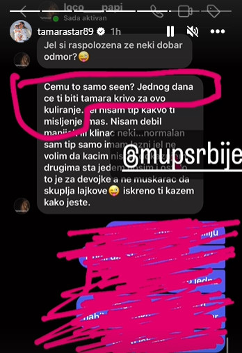 Tamara mu je jasno stavila do znanja da nije zainteresovana za komunikaciju, ali kako je sagovornik bio uporan, Đurićeva je morala da reaguje na ovaj način.