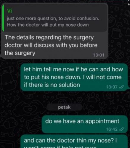 – Operaciju sam radila pre godinu dana, ali nos je trebao da dobije potpunu drugu formu da dobije za to vreme. Doktor je rekao da će dobiti nos tu formu koju je on u glavi svojoj napravio, ali ta forma nikad nije napravljena. Ja doktore gledam samo kao doktore i sve plaćam novcem, ne u naturi – rekla je ona.