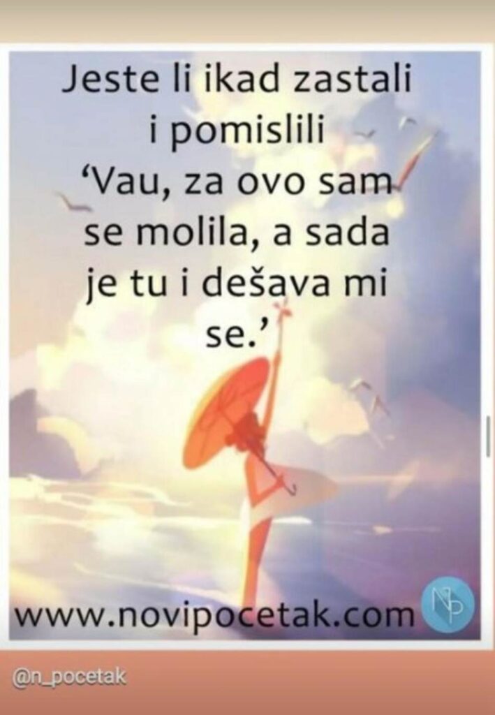 „Jeste li ikad zastali i pomislili: ‘Vau, za ovo sam se molila, a sada je tu i dešava mi se’„, stoji na statusu koji je Tanja objavila.