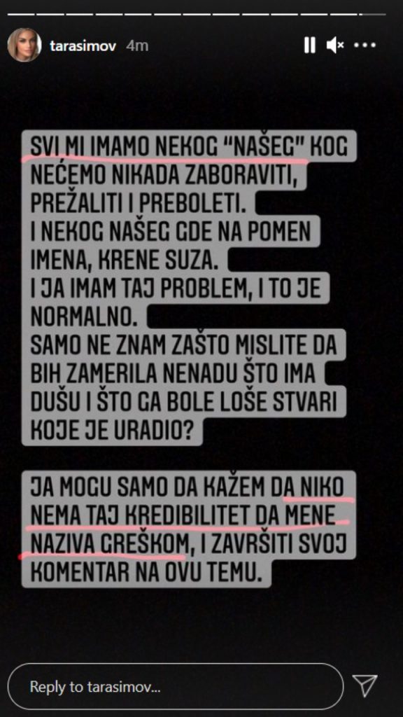 Nakon što se Nenad Aleksić Sha pokajao što je prevario svoju bivšu suprugu Ivanu, oglasila se Tara Simov na svom Instagram profilu.
