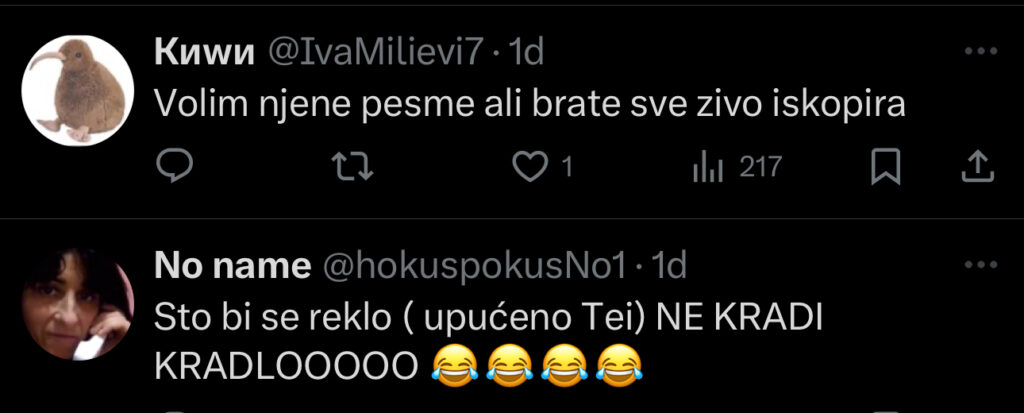 “Što bi se reklo (upućeno Tei) Ne kradi kradloooo”., bio je drugi komenar od mnogih.