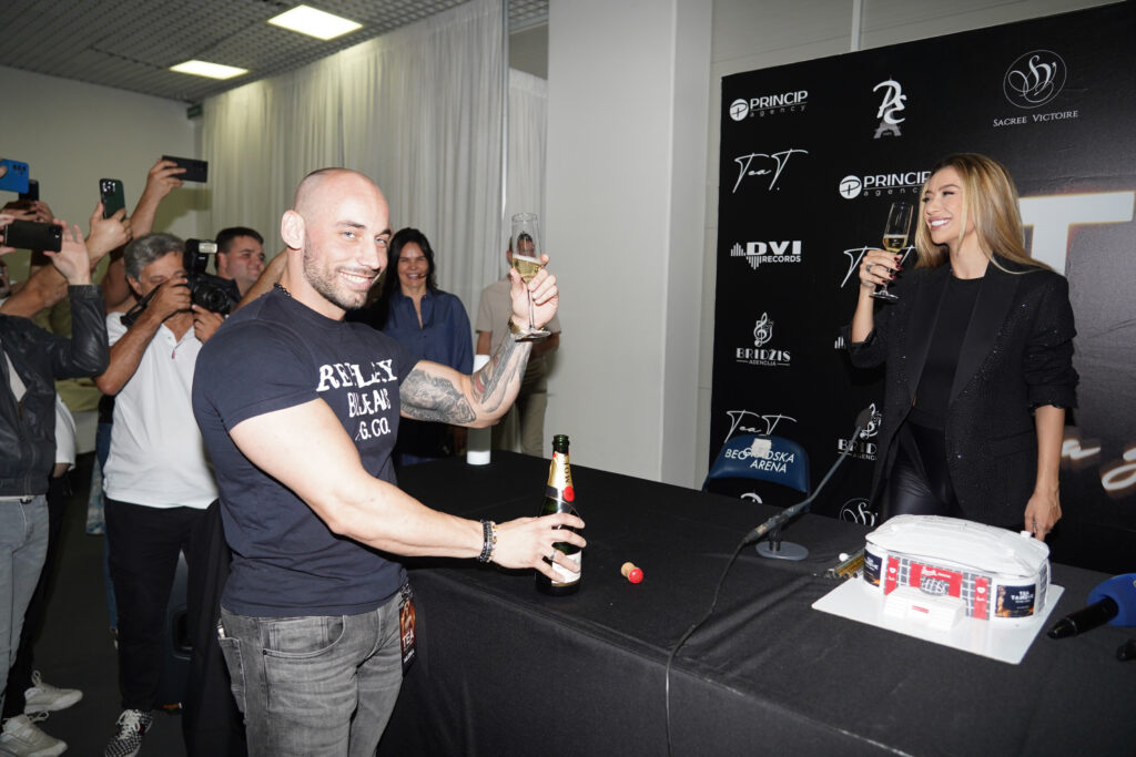 Na konferenciji za medije, Tea je prvo nazdravila sa svojom jačom polovinom, a svi su ih oduševljeno posmatrali.