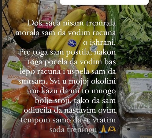 – Juče sam posle 25 dana išla na trenin. I naravno da me danas rane bole, ali šta ću kad nisam normalna i nisam više mogla ni dan da izdržim – poručila je pevačica, a onda progovorila o ishrani.