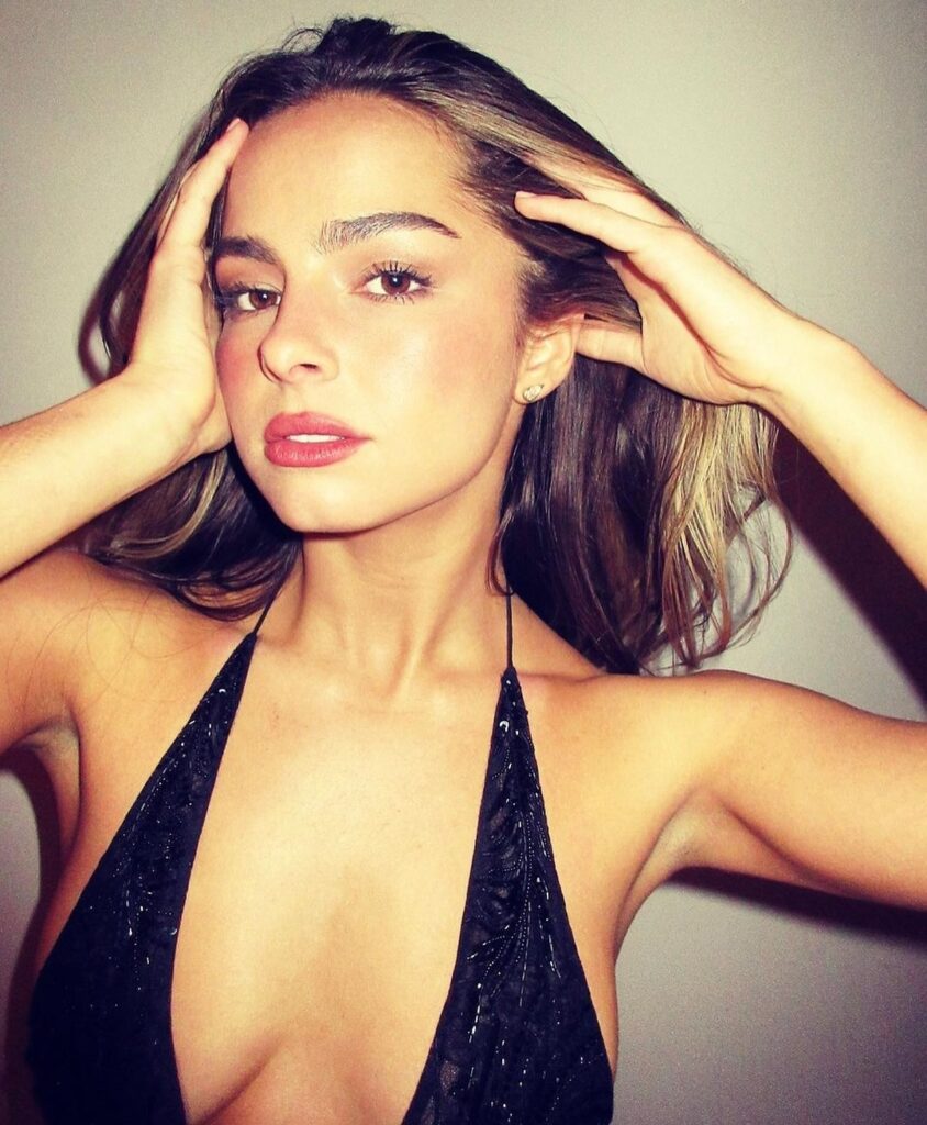 U skroz providnoj crnoj haljini, otkrila je gaćice iste boje, dok su prorezi na struku isticali njenu neodoljivu figuru u obliku peščanog sata. Dekolte seže sve do pupka, a trakasti detalj na sredini čini haljinu izazovnijom.