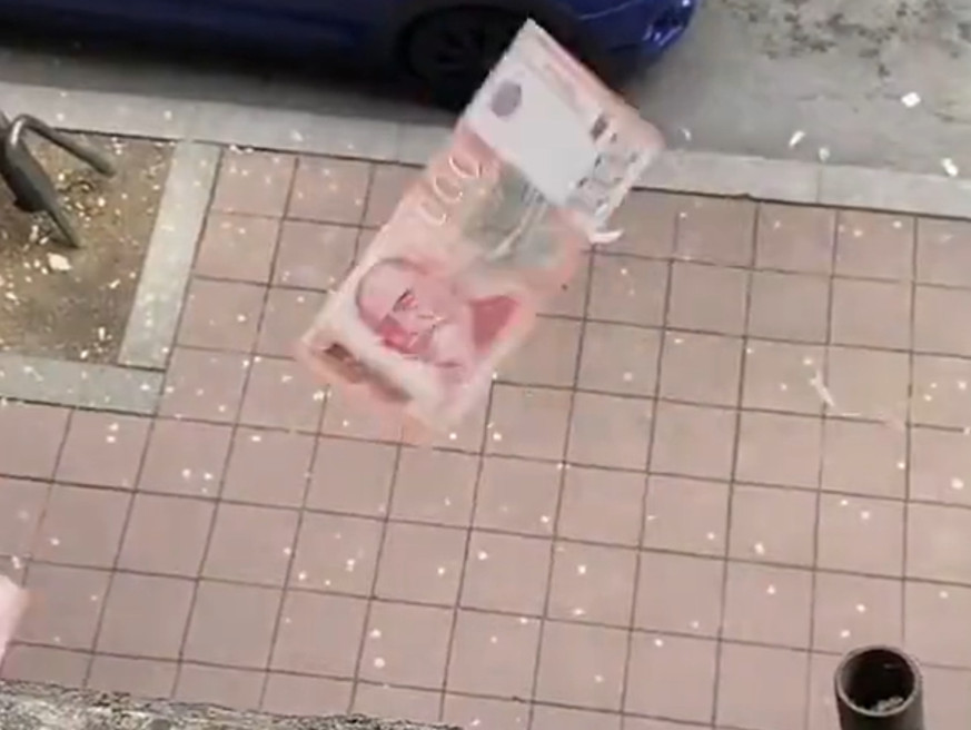 „Upravo ću izbaciti neki keš kroz prozor da vidimo kako će ljudi reagovati i da li će ga neko pronaći“, kaže on na početku snimka dok drži novčanice od 500 i 1.000 dinara u ruci, a onda nekoliko njih baca na ulicu.