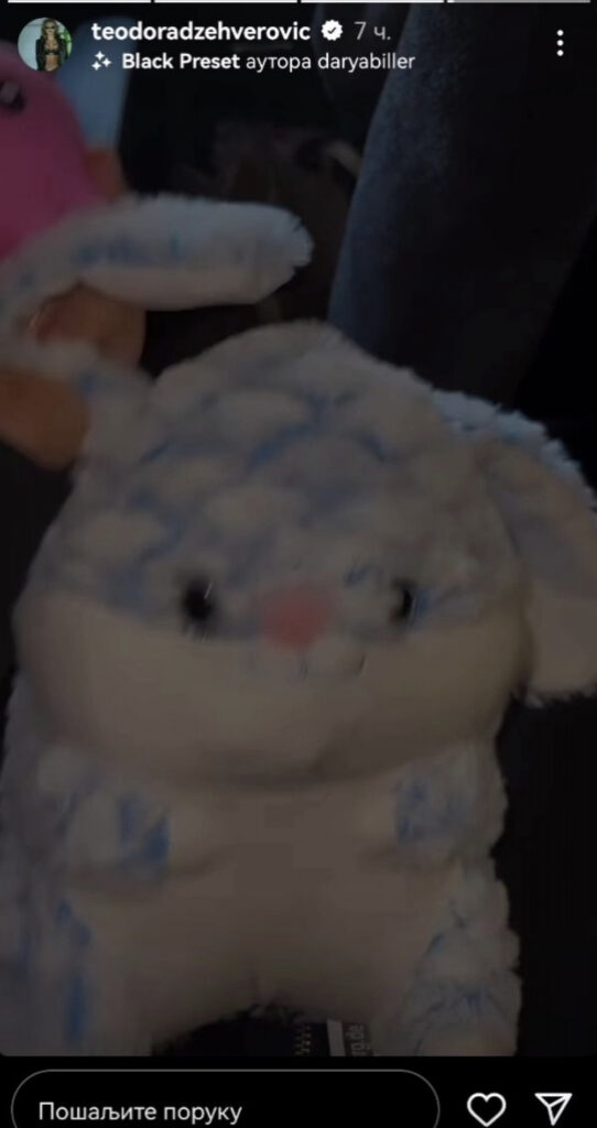 Popularna pevačica Teodora Džehverović nedavno je raskinula dugogodišnju vezu sa košarkašem, a sada je otkrila kako planira prebroditi tu tešku situaciju. Naime, Teodora je sa svojim pratiocima na društvenim mrežama podelila snimak u kojem pokazuje igračke koje je kupila, a zatim otkrila da će spavati pored plišane životinje.