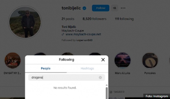Toni je, čini se, obrisao ili čak blokirao Draganu na Instagramu, nakon što je pomenuti mrežu vratio, ali je njihove zajedničke fotografije ostavio.