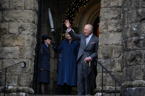 Kralj je na prijemu isekao rođendansku tortu napravljenu u obliku 200 godina starog zamka. A kasnije se sastao sa velikim brojem ljudi. Koji su se sklonili od oluje Klaudija koja je pogodila taj deo zemlje.