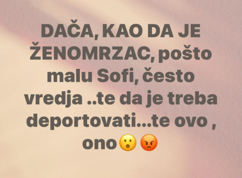 -Dača, kao da je ženomrzac, pošto malu Sofi, često vređa, te da je treba deportovati, te ovo, ono – stoji u opisu.