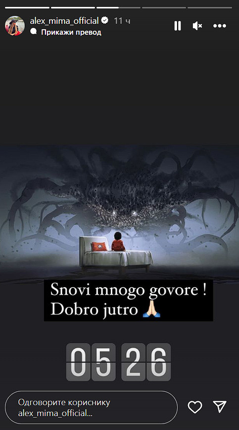 – Snovi mnogo govore! Dobro jutro – napisala je Aleksandra rano jutros.