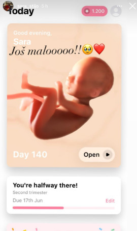 Ona je najpre podelila fotografiju gde se vidi koji je dan trudnoće. Radi se o aplikaciji koja mamu obaveštava kada beba stiže na svet.