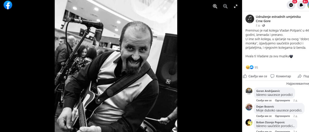 Podgorica je ostala bez jednog od svojih istaknutih muzičara, basiste Vladana Potparića, koji je iznenada preminuo u 44. godini života.