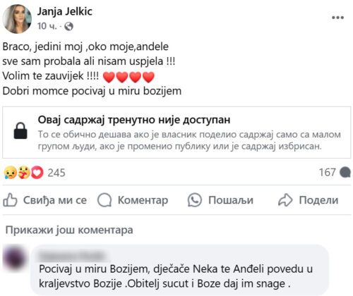 Foto:Printskrin:Fejsbuk/Janja Jelkic