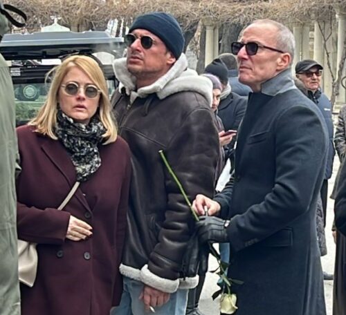 Ubrzo je stigla i Jelisaveta Orašanin sa tamnim naočarima na licu. Ona se pridružila svojim kolegama, pa su zajedno stali u red kako bi ušli u kapelu da izjave saučešće.
