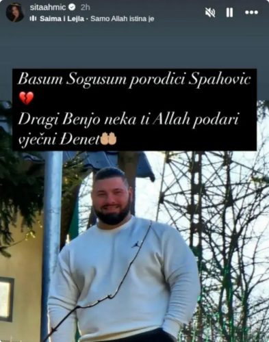 – Basum Sogusum porodici Spahović. Dragi Benjo, neka ti Alah podari večni dženet – napisala je ona ispod njegove fotografije.