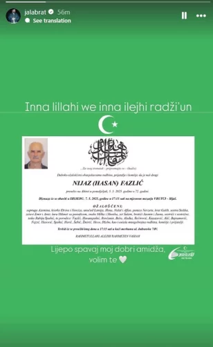 On se od njega oprostio na na društvenim mrežama, gde je na storiju objavio umrlicu.