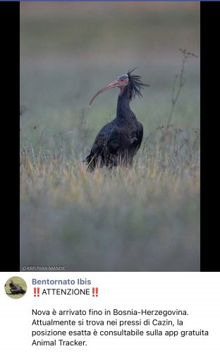 Ovu informaciju potvrdila je Organizacija za zaštitu životne sredine „Bentornato Ibis“ iz Toskane u Italiji, koja prati kretanje ove izuzetno retke vrste ptica, kojih je, prema njihovim istraživanjima, na svetu preostalo još svega oko 300, preneo je Klix.ba.