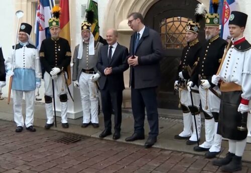 Prethodno, Vučić je imao tet-a-tet sastanak sa Šolcom. Po dolasku u Frajberg Vučić i Šolc upisali su se u „Zlatnu knjigu Grada Frajberga“. Dok se u tekstu navodi da je u središtu današnje posete bila konstruktivna razmena mišljenja sa saveznim kancelarom Olafom Šolcom. Na temu održive ekstrakcije litijuma u Nemačkoj i Srbiji.
