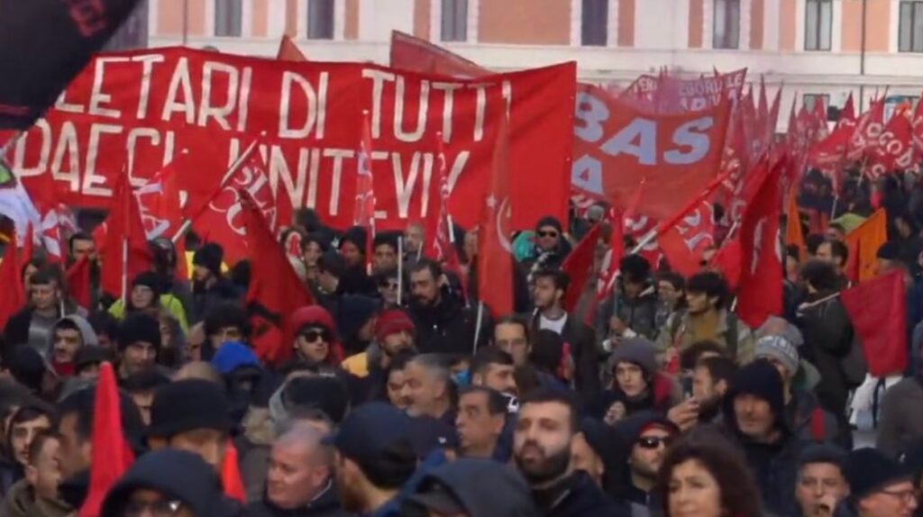 Hiljade građana, levičarskih demonstranata, demonstriralo je u Rimu, zahtevajući povećanje plata i osuđujući odluku italijanske premijerke Đorđe Meloni, da nastavi sa slanjem oružja Ukrajini do kraja 2024. godine.