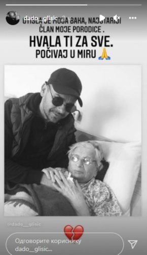 Naime, Dado je na Instagramu objavio fotografiju svoje bake od koje se oprostio dirljivim rečima, pevač je slomljen uputio poslednji pozdrav najstarijem članu njene porodice.