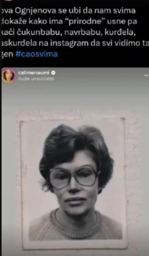 „Ova Ognjenova se ubi da nam svima dokaže da ima ‘prirodne’ usne, pa kači čukunbabu, navrbabu, kurđela, askurđela na Instagram da svi vidimo taj gen“, napisao je jedan korisnik društvene mreže Instagram, a mnogi su se sa njim složili.