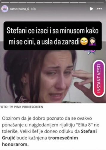 – Stefani će izaći i sa minusom kako mi se čini, a ušla je da zaradi – poručio je jedan od gledalaca. Jasno izražavajući razočaranje zbog njenog ponašanja i promašenih ciljeva u ovom rijalitiju.