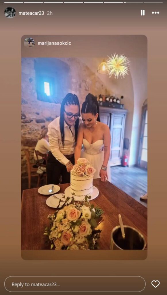 Na jednoj od fotografija koja je zapalila društvene mreže, vidi se Anđela u beloj venčanici, dok se Matea odlučila da na svoj veliki dan obuče svečano odelo.
