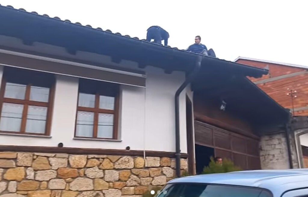 – Ne dam, ovo je moje, moja kuća, moje sve! Neću! Ne dam! Nek se vrati kamion, kunem se, skočiću, preti Milan sa krova kuće, dok jedan od meštana pokušava da ga spreči, a majka vrišti i kuka na sav glas: