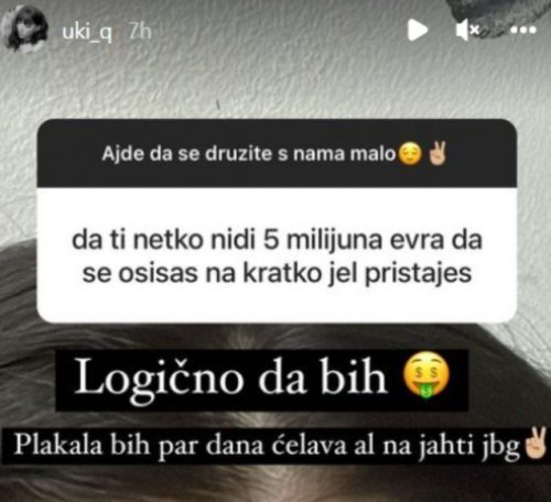 Poznato je da Uki nema „dlake na jeziku“ kada želi da iskaže svoje mišljenje, a ovog puta je rekla da bi se ošišala na ćelavo za veliku sumu novca i da bi provela nekoliko noći sa osobom istog pola.