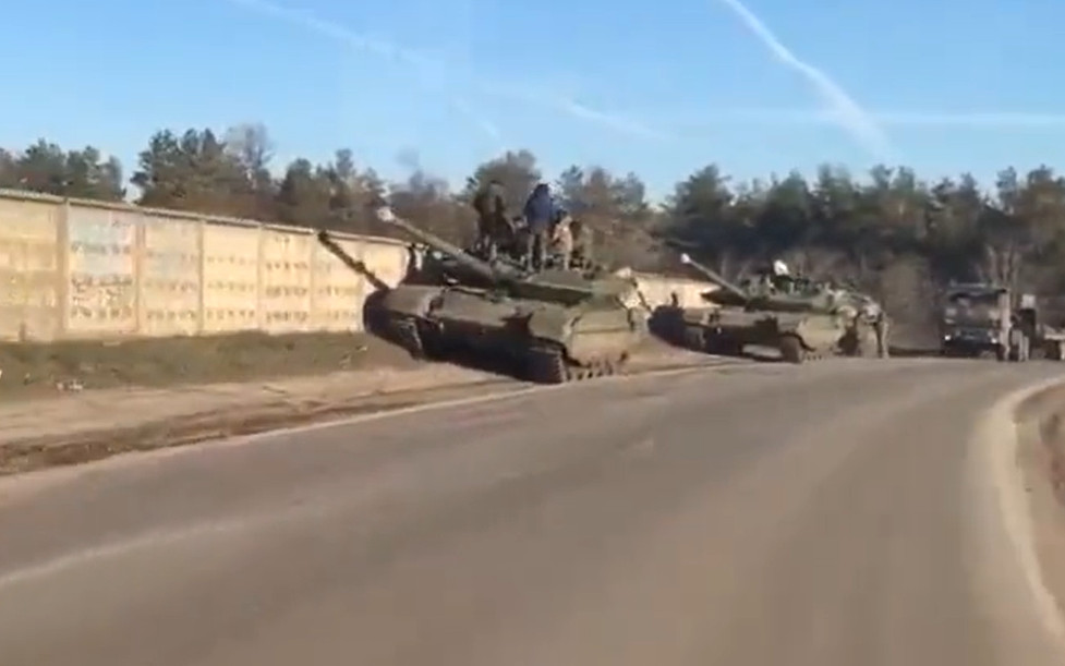 Video of Russian T-90M and T-72B3M tanks on the move in Belarus.