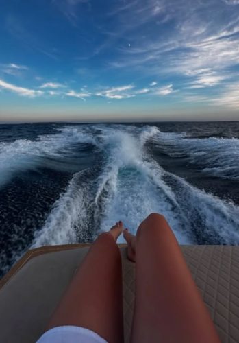 Na Instagramu je podelila fotografije sa pučine i sa plaža, pokazujući kako provodi vreme na jahtama i sunča se na krevetima na pesku.