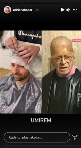 Adriana je na svoje instagram storije okačila video snimke, na kojima se jasno može videti njen novopečeni suprug Sava koji uživa na frizerskoj stolici.